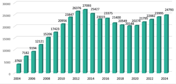 W latach 2023 – 2024 wzrosła więc liczba ekologicznych producentów rolnych, co wpisuje się w aktualny trend. W 2023 r., w porównaniu do roku poprzedniego, stwierdzono wzrost liczby tych podmiotów o 5,5%, natomiast w 2024 r. o 3,6%. Gdy mowa o podmiotach przygotowujących żywność ekologiczną, liczba ich pozostaje zbliżona. W roku 2023 liczba podmiotów ekologicznych zajmujących się przygotowaniem produktów rolnictwa ekologicznego zmniejszyła się o 1,2% w porównaniu do roku poprzedniego, natomiast w 2024 r. nastąpił wzrost liczby tych producentów o 2,1% w porównaniu do 2023 r.
