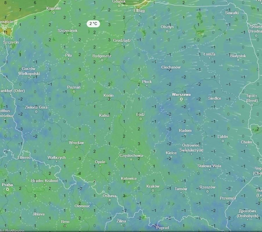 Tradycyjnie już najbardziej narażone będą wschodnie części kraju, choć niskie temperatury zapanują także wzdłuż granicy z Niemcami. Narażone będą także centralne dzielnice i tu właśnie spodziewana jest najniższa temperatura. W okolicach Nowego Miasta, a więc w dolinie Pilicy, przy gruncie temperatura spadać może do -3°C.