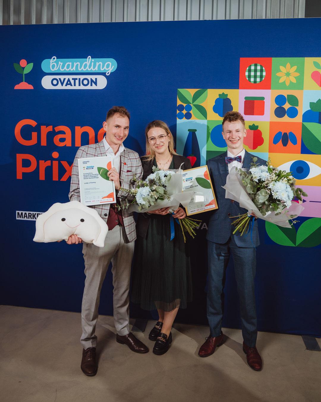 - Grand Prix Branding Ovation 2026 w kategorii Dział Marketingu - Lody z Farmy i Mateusz Maruszewski.